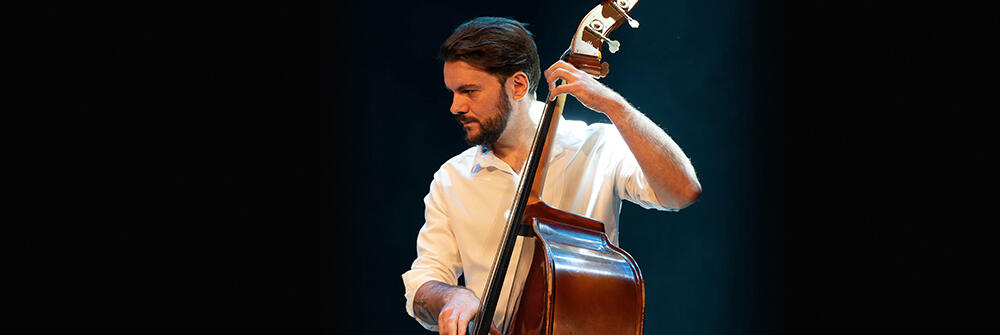 Fred est le contrebassiste du groupe. De loin, c'est un protagoniste qui semble calme et apaisé.Mais ne vous fiez pas aux apparences, il a beau se cacher derrière son "grand violon", il n'est pas moins enragé.Ses délires ne sont pas exclusifs à Ketelos Trio, vous pouvez le voir acharné dans le groupe de swing rennais Château Lapompe.Mais c'est une couverture... En cours de rémission au sein du Conservatoire de Saint Brieuc, en classe de jazz, il peut à certain moment faire des récidives... pour le pire comme pour le meilleur !